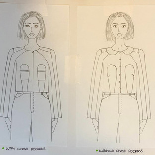Today I spent half the day trying to figure out how to get rid of the bust dart on the front of the jacket. But after a lot of experimenting, I figured out that it was impossible, so decided to put a small dart in the bust detail instead. Darts have always confused me, but I know it's an important part of pattern cutting. I feel as though doing this project has helped me understand them a lot more, especially through experimenting by cutting into my pattern and figuring out how to remove/move a dart. I work a lot better by doing things in 3D rather than drawing as you can get a better idea about where the lines will be most flattering or interesting on the body. I’m still worried about being behind on this project though as I've still got a lot to do. Once I've sewn the jacket together, I need to think about the collar and pockets. From my research of Chanel jackets I would like to incorporate a similar collar and chest pockets. These chest pockets will also cover the small bust dart to make the jacket appear more polished.